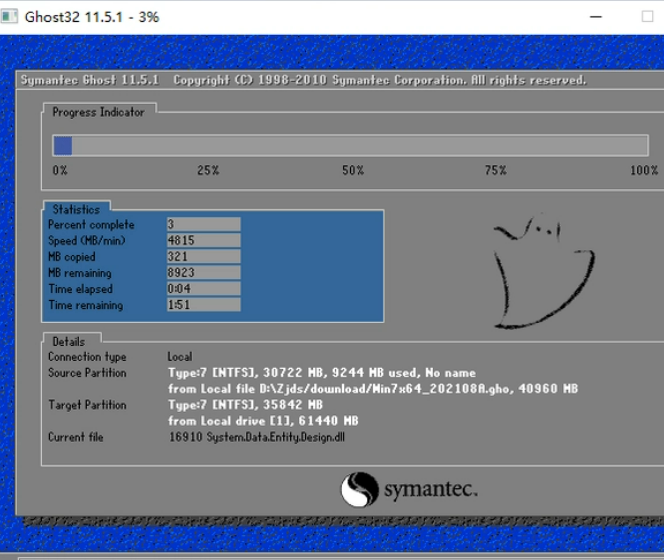 8、系統備份完成后,將會再次重啟,自動進入系統安裝界面,這時等待系統安裝完成。
