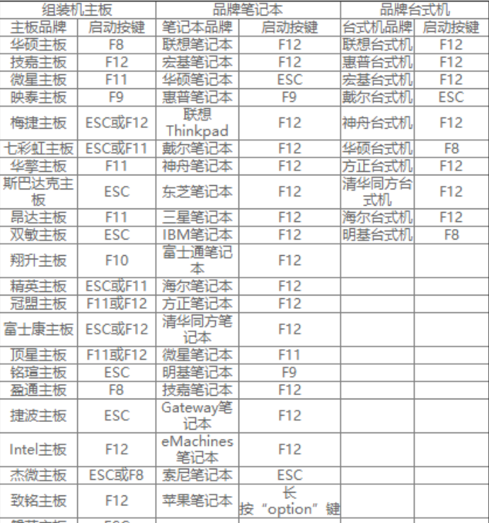 2.將大白菜u盤插入電腦,重啟系統,引導u盤進入啟動項選擇窗口,下面小編列出各種品牌的一鍵啟動u盤的快捷鍵查詢表。