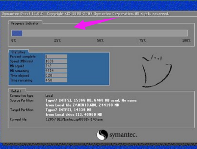 4、在pe內,小魚裝機軟件會自動安裝系統。
