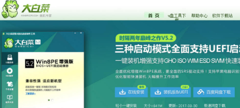 1.首先網上下載“大白菜”,并按照網上的U盤制作教程制作工具。