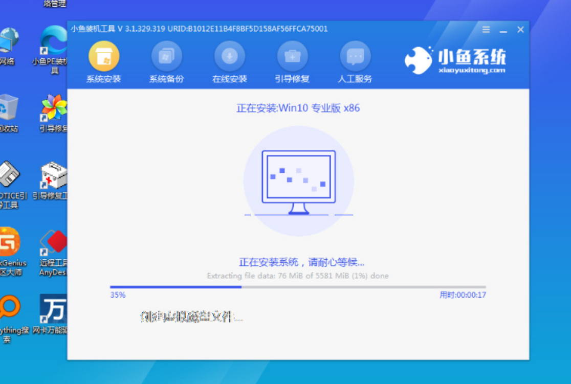 進入pe系統等待工具安裝然后重啟進入新系統桌面。