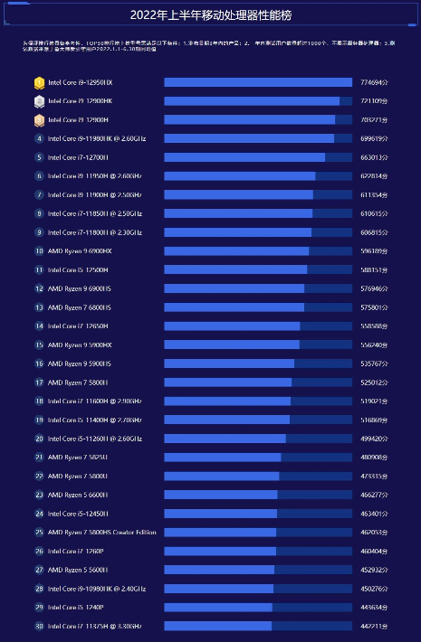 以上就是小編整理分享的2022上半年cpu性能排行榜天梯圖,包括了臺式機與筆記本的cpu性能排行榜,希望大家能有所了解。