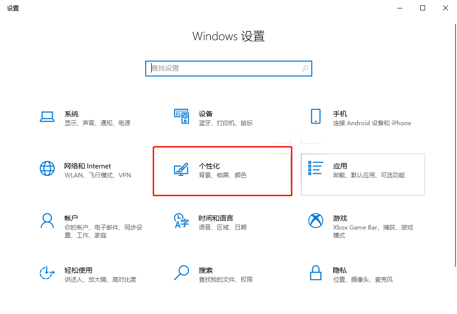 1、同時按下鍵盤win+i組合鍵打開設置,點擊進入個性化。