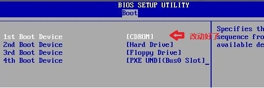 6.修改完成后可以看到第一啟動項是光盤啟動。