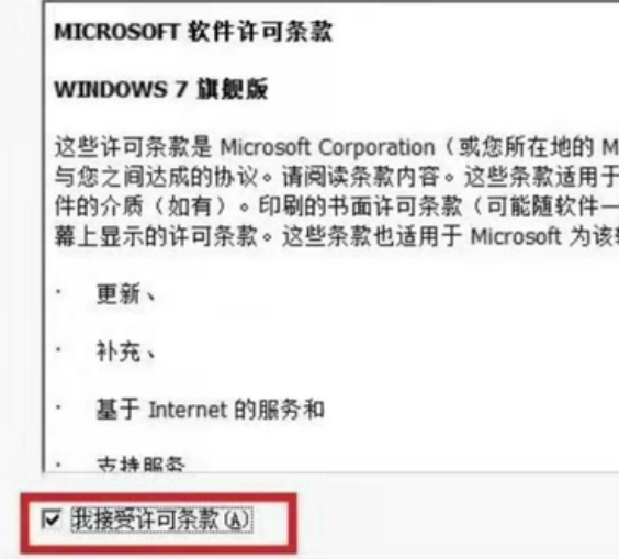5、等到出現系統加載界面時選擇中文、再點擊下一步。然后耐心等待安裝程序正在啟動。接著接受許可條款后再點擊下一步。