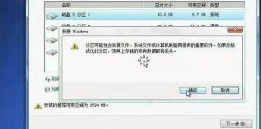 6、在選擇分區時我們的類型選擇為系統,然后點擊確定。