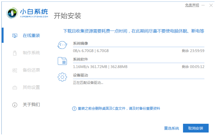 3、耐心等待軟件下載系統鏡像資料以及驅動等。