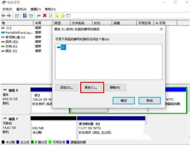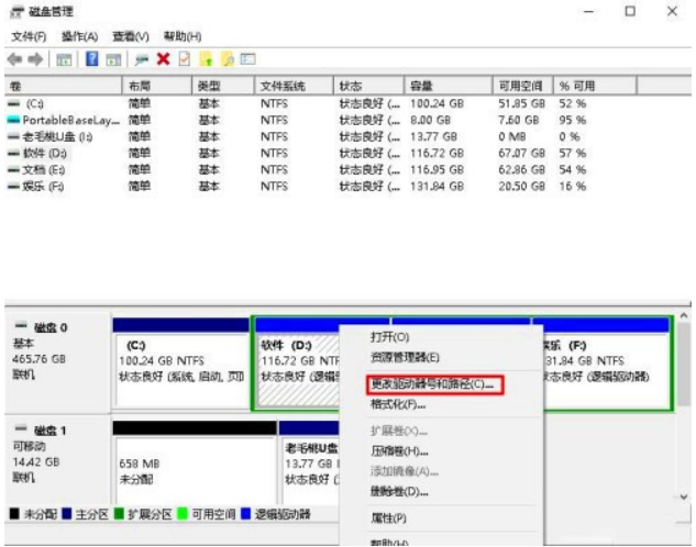 2、點擊消失的硬盤驅動器,選擇更改驅動器號和路徑。