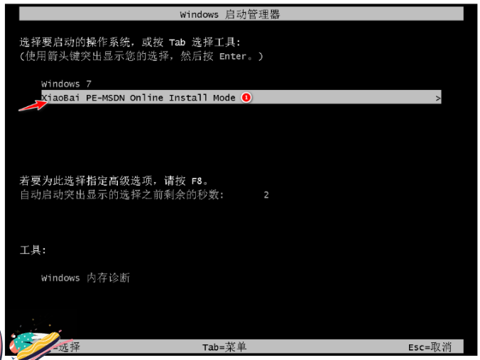 5、重啟電腦時讓電腦進入 PE ,選擇進入 XiaoBai PE-MSDN Online Install Mode 。