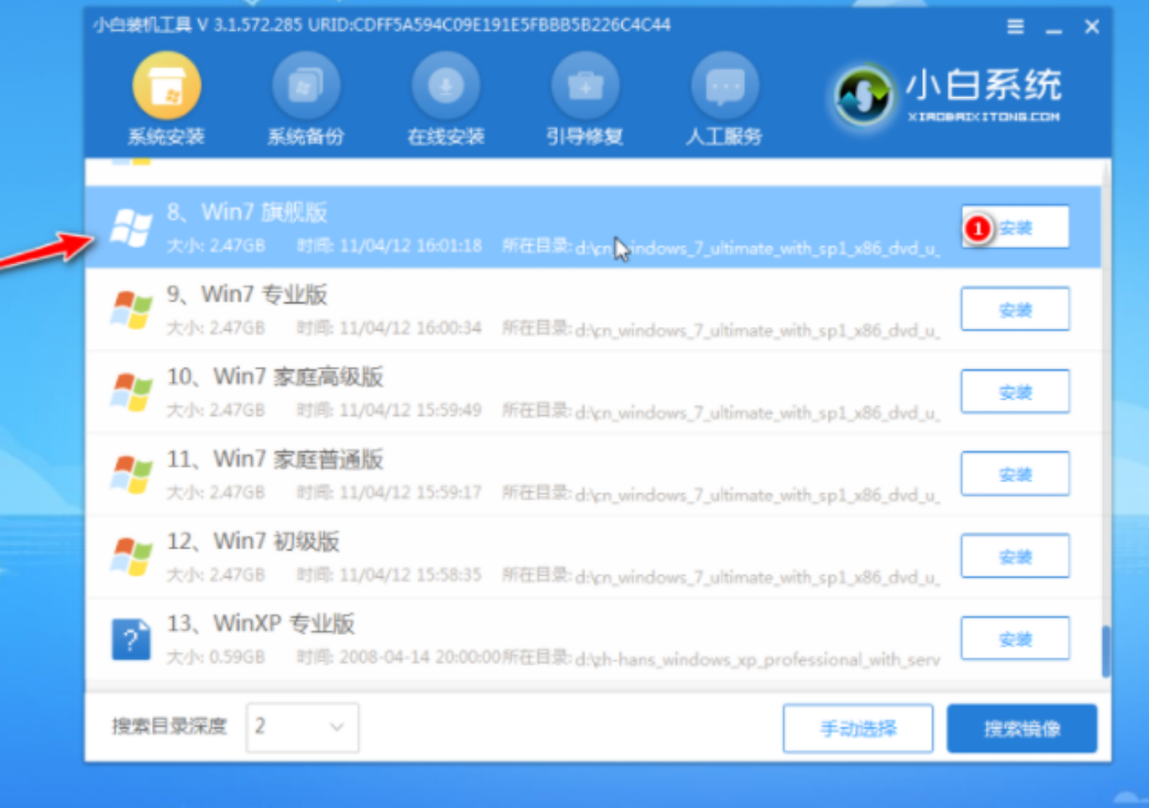 5、打開工具,選擇需要安裝的系統點擊安裝。