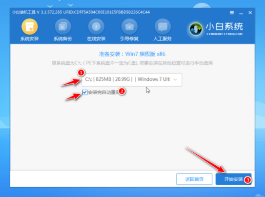 6、建議將系統安裝到系統盤c盤,點擊開始安裝。