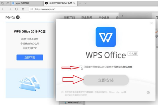 4、閱讀同意安裝協議之后,鼠標點擊立即安裝,耐心等待到安裝完成即可開始正常使用wps。
