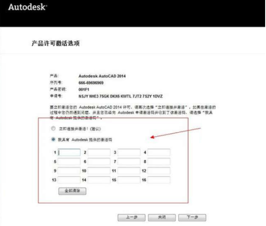 11.接著復制激活碼到AutoCAD的激活界面,并點擊下一步。
