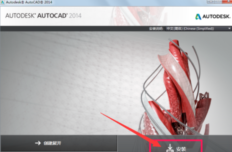 2.當解壓完成后出現該頁面,點擊安裝AutoCAD2014。