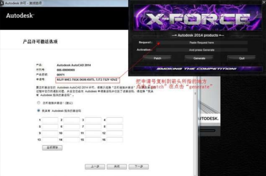 10.我們把申請號復制到“Request”空格中 點擊“patch”按鈕,再點擊“generate” 按鈕。