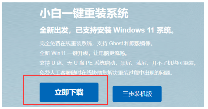 2、進入界面之后,點擊左邊【立即下載】按鈕,把小白裝機大師下載到電腦當中。