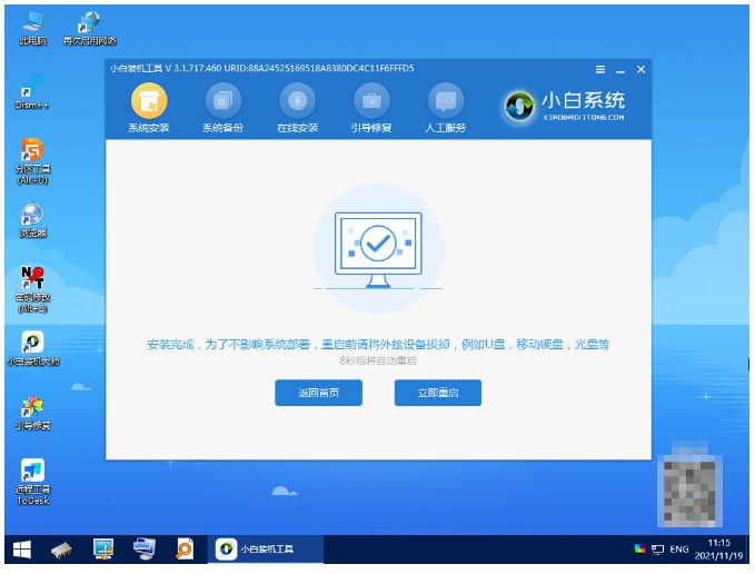 5、進入pe系統后,小白裝機工具將會自動重啟并安裝win11系統。