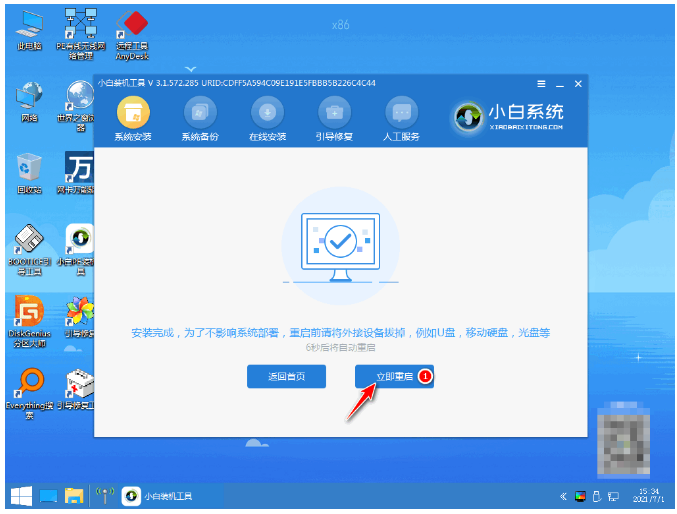 6.系統安裝完成后,選擇立即重啟電腦,重啟電腦之前拔掉外接設備。