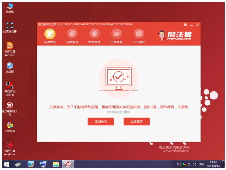 6、當提示安裝完成之后,點擊立即重啟電腦。