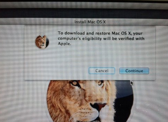 10、點擊「Reinstall Mac OS X」,然后會彈出在安裝前會先與 Apple 的伺服器取得認證,記得此時一定要連接互聯網,然后點按「Continue」繼續。