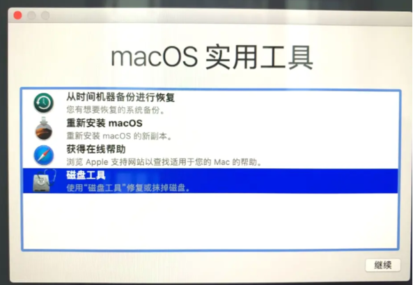 方法二:將MacBook Air關閉,然后手指按住Command+R,根據以下不走完成即可。