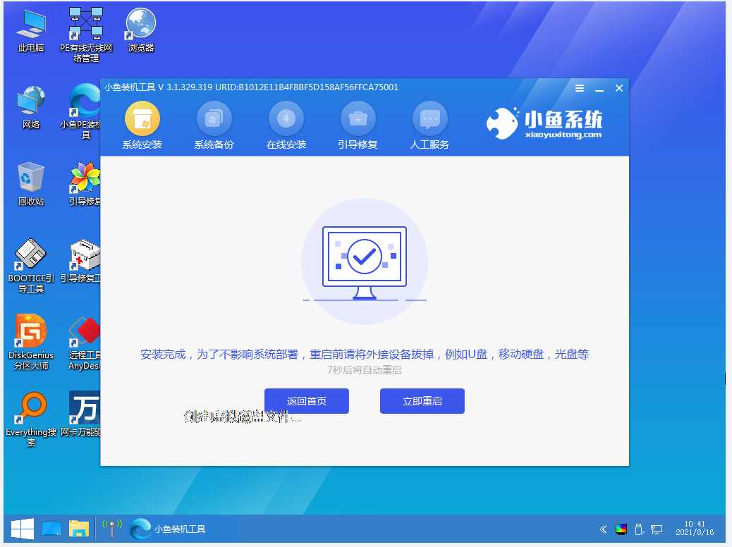 4、進入安裝狀態后,小魚軟件將會自動進入環境部署狀態,等待部署完成后,點擊“立即重啟”。