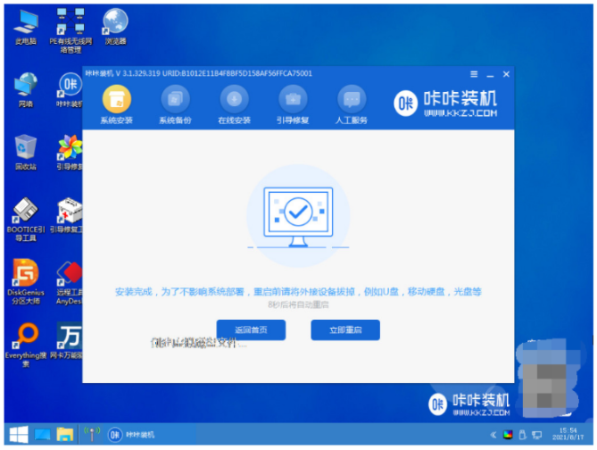 3、裝機軟件自動安裝成功后點擊重啟電腦;