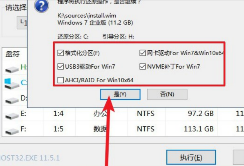 7、彈出還原窗口的時候,只需默認設置,點擊是。