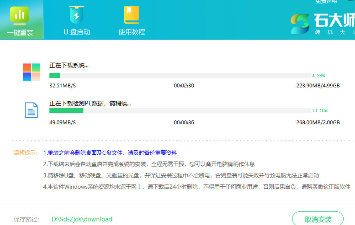 軟件版本:石大師一鍵重裝、老毛桃裝機工具