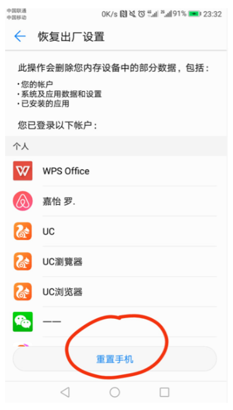 5、在恢復出廠設置的頁面我們點擊下方的”重置手機“即可完成重裝系統。