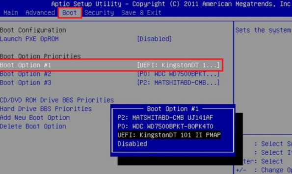 4.將u盤啟動盤插入到需要重裝的電腦usb接口中,重啟電腦連續按啟動熱鍵進入bios頁面,將啟動項設置為u盤啟動項進入。