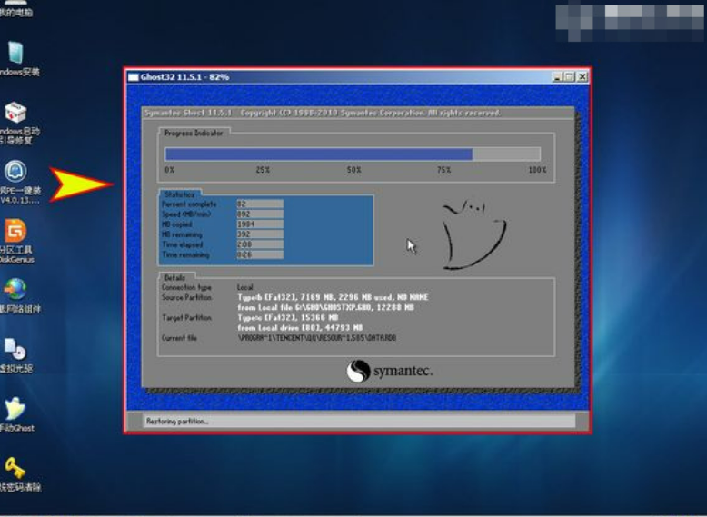 5、進入如下PE界面,并且會自動彈出一個自動Ghost方框;