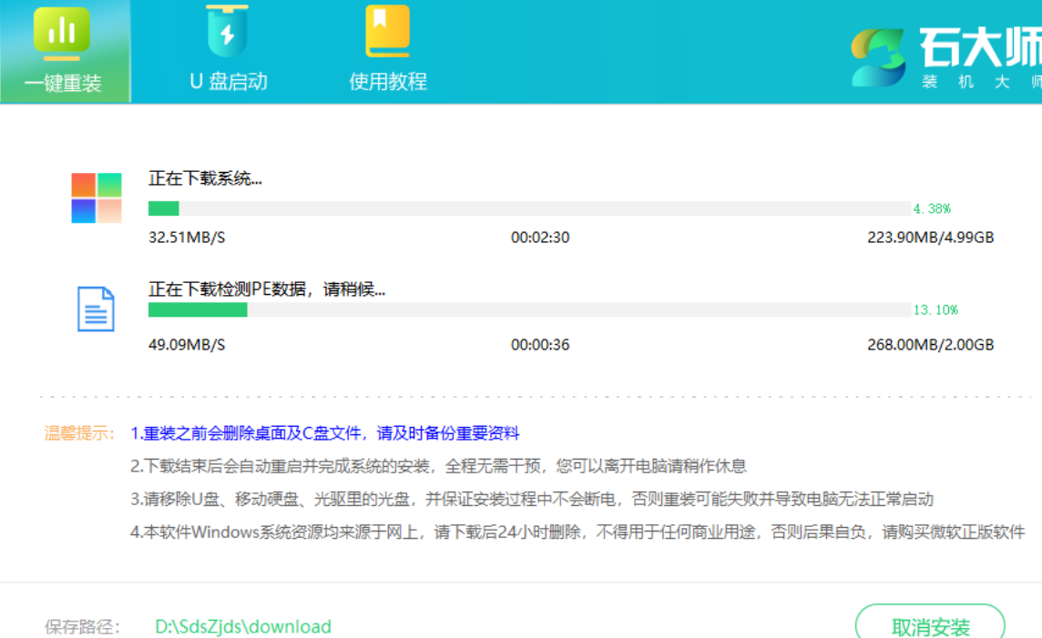 方法二:使用石大師一鍵重裝
