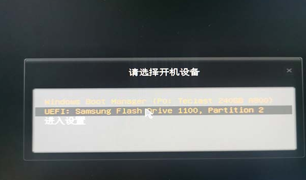 ps:這里選擇第二個,也就是制作好的U盤啟動,小編的是U盤名字三星,每個用戶不一樣,兩個硬盤的用戶,是第三個U盤啟動。