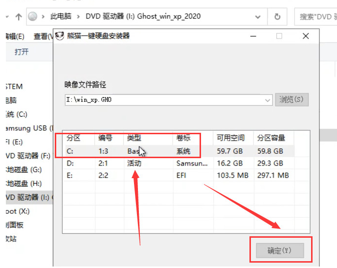 第六步:打開熊貓一鍵硬盤安裝器,選擇C盤,點擊確定。