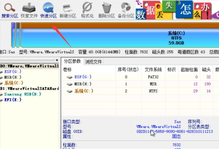 第四步:打開桌面上的分區助手,點擊快速分區。