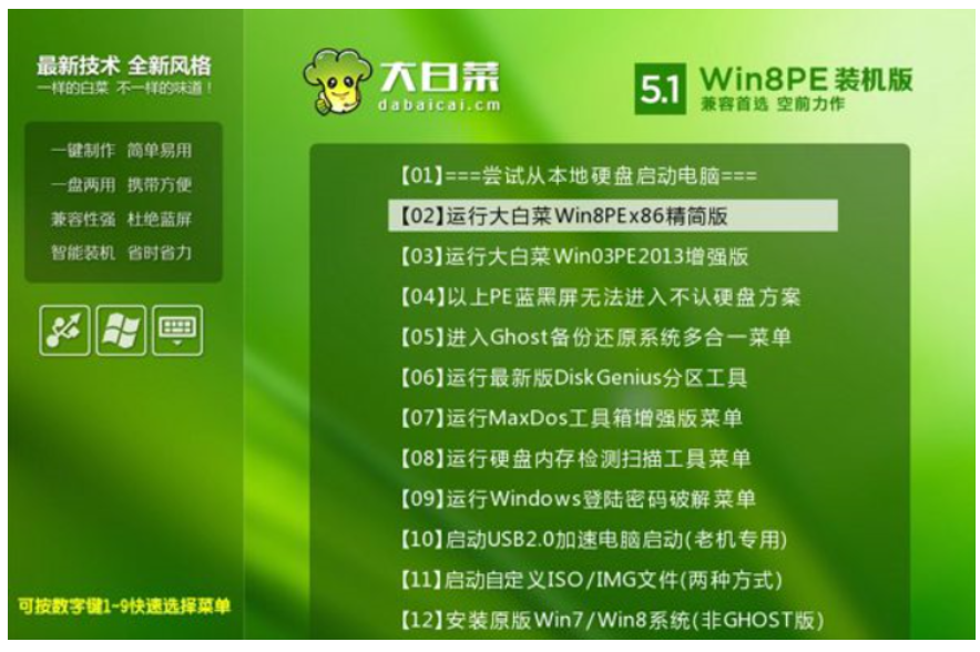 3、按數字2或通過方向鍵選擇【02】選項按回車。