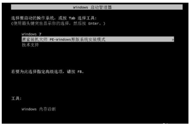6、在這里選擇“黑鯊裝機大師 PE-Windows原版系統安裝模式”。