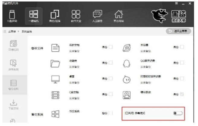 4、在這里勾選自己需要備份的文件,并且開啟殺毒模式。