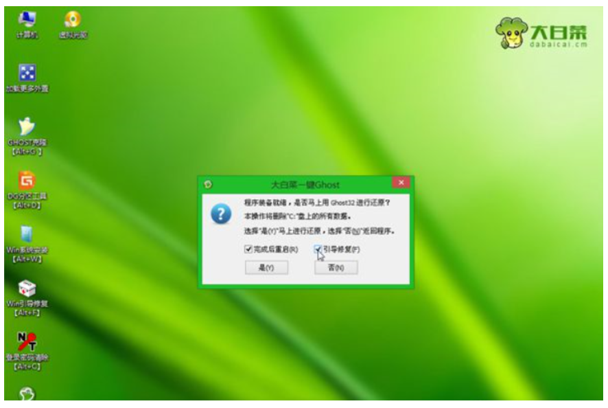 6、點擊“完成后重啟電腦”以及“引導修復”,點擊“是”。