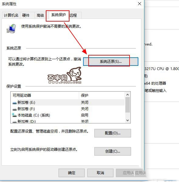 3、然后在系統屬性窗口的系統保護選項卡里,點擊【系統還原】,如下圖所示。