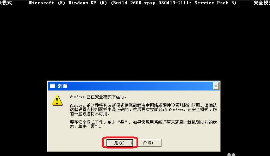 2、選擇是,否就是不進入安全模式,如果沒有進入安全模式就無法恢復。