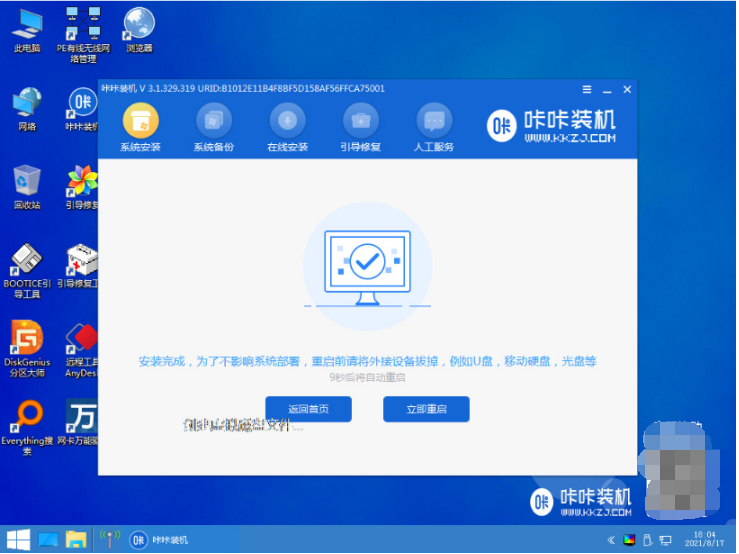 6、等待安裝完成后,拔掉u盤重啟電腦。