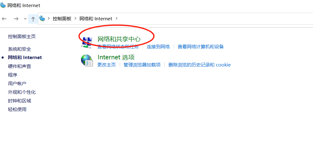 6、打開網絡和共享中心。