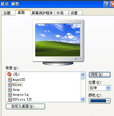 5、彈出一個“顯示屬性”窗口,在這個窗口中,我們點擊打開“桌面”選項。