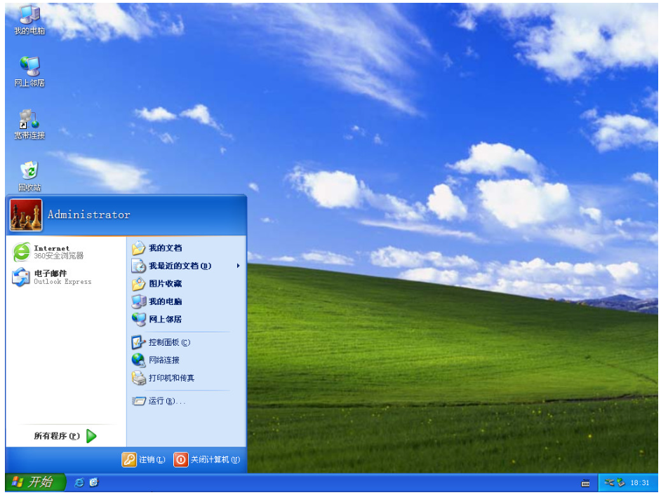 7、進入winXP系統菜單界面即說明winXP的重裝完成了。