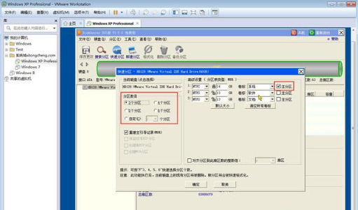 右鍵選擇硬盤,點擊“快速分區”,選擇分區數目并設置分區大小,勾選“主分區”,確定。