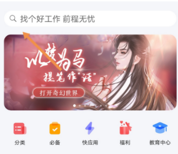 2、當來到"應用市場"界面之后,點擊放大鏡。