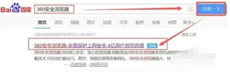 1、360安全瀏覽器官怎么下載安裝,首先打開瀏覽器,在搜索欄中,輸入【360安全瀏覽器】,在出來的結果中,點擊進入官網。