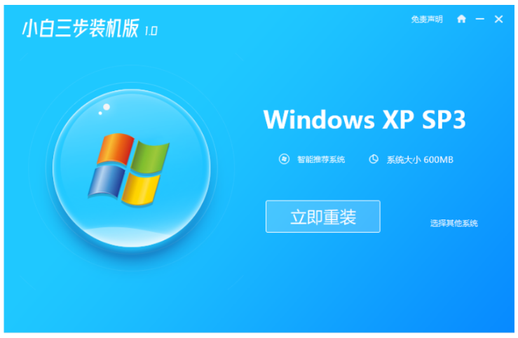 1、在電腦上下載安裝小白三步裝機版工具,選擇需要安裝的xp系統,點擊立即重裝。